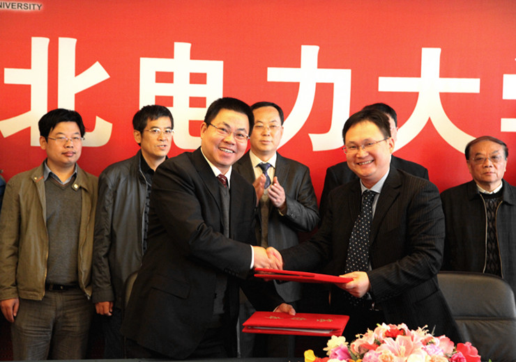 On Nov.27th, NCEPU and Suzhou Taigo Science Invest Development co.,Ltd held the signing ceremony of building Suzhou Science Park. Huang Xinsheng, Chairman of Suzhou Taigo Science Invest Development co.,Ltd and his group came to our school to take part in the ceremony. Yang Yongpin, Vice-president of NCEPU, Fan Hansong,Director of Office of Assets Control, Tan Qinliang, Executive Vice-President of Academy of Science and Technology, Zhao Liming, Deputy Director of Postgraduate Committee of Party Office and Postgraduate School, Zhang Yimei, Vice-director of Suzhou Research Institute, Zhu Zhengmao, Director of Base Construction and Achievement Management Department of Science and Technology Academy, Xu Anliu, Director of Project Department 2nd of Science and Technology Academy, Wang Hongsheng, Director of National University Science Park Management Office of Science and Technology Academy attended the signing ceremony. In opening remarks, Yang Yongping said that, we were willing to cooperate with more and more private enterprises and establish long-term cooperation of enterprises, colleges and institutes. He hoped that, both sides would continue to carry out substantive work based on the cooperation and promote university’s achievement transformation in Suzhou Science Park. Huang Xinsheng highly praised our school’s outstanding contribution to scientific research progress of power industry and national energy electric power construction. He firmly believed that, Suzhou Science Park would definitely promote the modern electric power research and development in Suzhou. Wang Hongsheng, Director of National University Science Park Management Office of Science and Technology Academy, Zhang Yuan, Deputy General Manager of Suzhou Taigo Science Invest Development co.,Ltd introduced the operation of National University Science Park of NCEPU and Suzhou Taigo Science Invest Development co.,Ltd respectively. Huang Xinsheng, Chairman of Suzhou Taigo Science Invest Development co.,Ltd and Tan Qinliang, General Manager of Beijing Hua Dian Tian De Science Park co.,Ltd, signed the agreement. The contract opened a new situation for co-organizing Suzhou Science Park. Based on new pattern of cross-region cooperative operation, our science park would actively promote cooperation of enterprises, colleges and institutes, and industrial agglomeration. After the meeting, the guests of Suzhou Taigo Science visited State Key Laboratory of Alternate Electrical Power System With Renewable Energy Sources, accompanied by Wang Hongsheng.